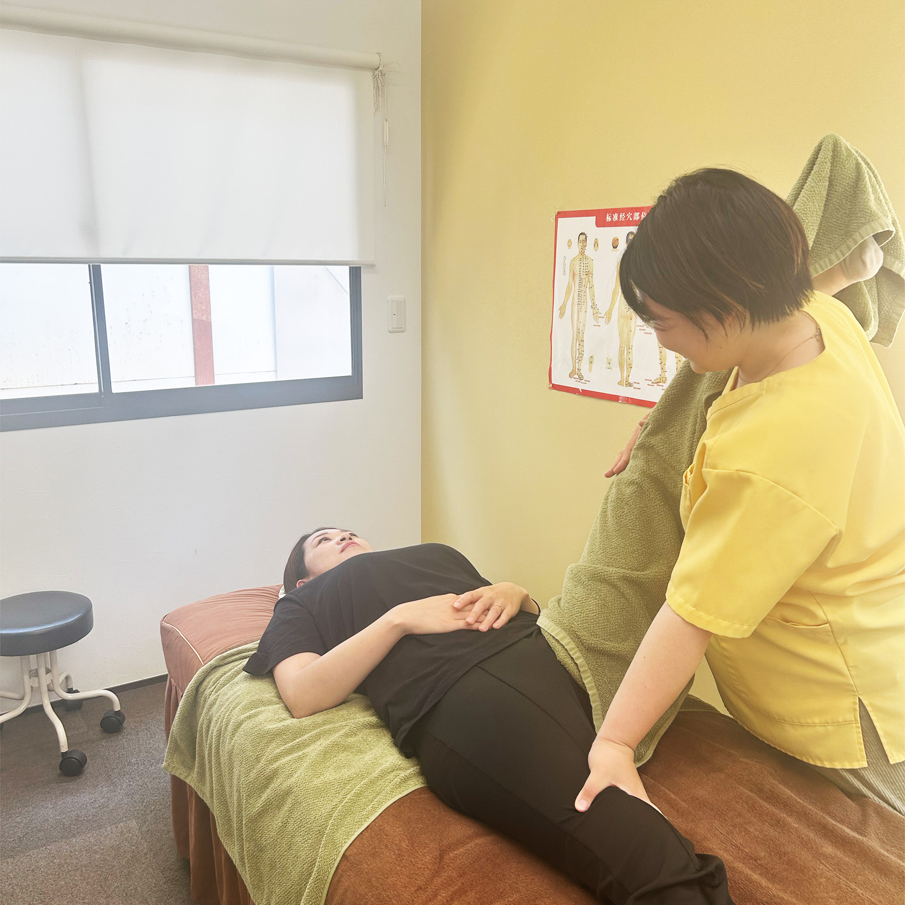 姿勢のチェックや触診で体のバラ ンスを丁寧に確認。不調の原因を 見極め、最適な施術プランを立て ます。